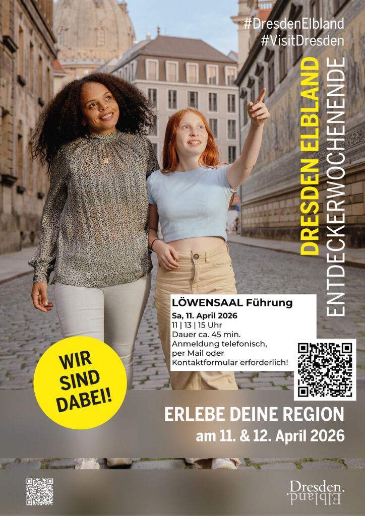 Am 11. und 12. April 2026âŻÂ lĂ€dt das⯠EntdeckerwochenendeâŻEinheimische dazu ein, Dresden Elbland neu zu erleben. Wir sind am Samstag, dem 11. April dabei und zeigen Ihnen gerne in unseren FĂŒhrungen um 11/ 13/ 15 Uhr unseren LĂWENSAAL & TRESOR.